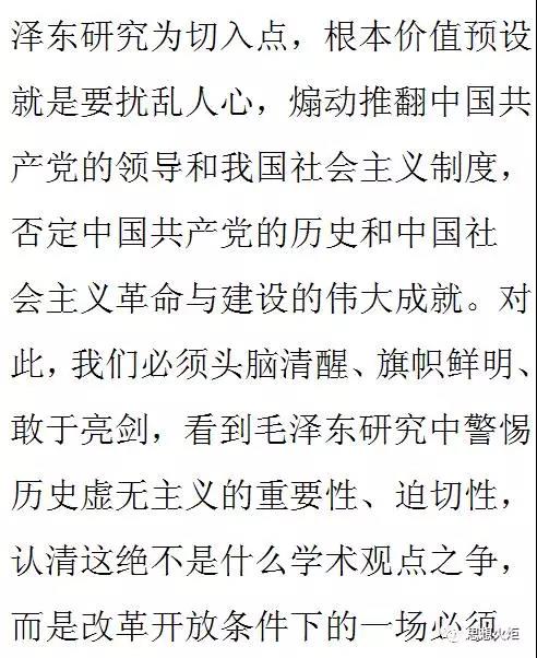 编者按:改革开放尤其是近段时间以来,历史虚无主义在我国思想文化界特别是毛泽东研究领域不时泛起,一些人借口“重新评判”历史,用种种所谓“历史细节”“还原历史本貌”等来歪曲近现代中国革命的历史、中国共产党和中华人民共和国的历史,特别是“神化”“丑化”或“虚化”毛泽东的形象,造成了部分人的思想混乱,在社会上引发了不良后果。