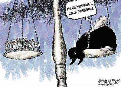 1.新自由主义在理论上是极端化的古典自由主义。古典自由主义在20世纪30年代的“大萧条”彻底破产,新自由主义是它的复活和再现。新自由主义虽然冠以“新”字,但与古典自由主义相比,并没有实质性的创新,主要是将古典自由主义中的自由放任原则极端化(包含扩大化)。因此,有学者将其称为“极端放任主义”,这实际上更符合其理论本质——放任强者自由地掠夺,放任弱者自由地被掠夺。这种具有极端化特点的新自由主义在“大萧条”之后数十年时间里,即使在西方国家也是臭名昭著的,只有少数人在那里自弹自唱。